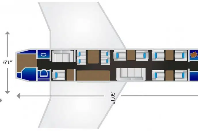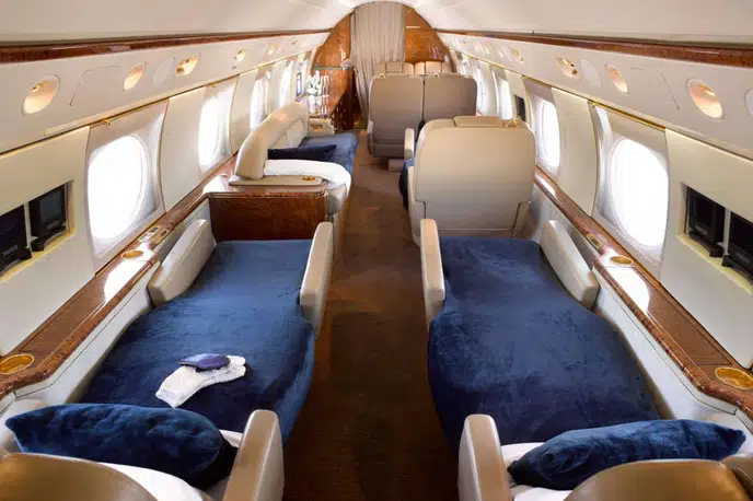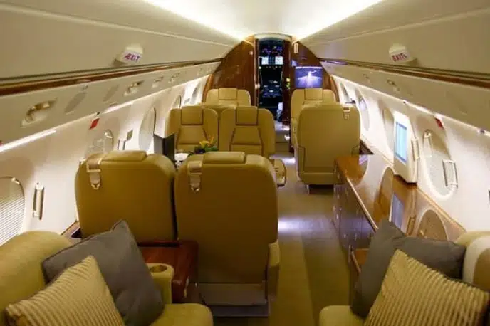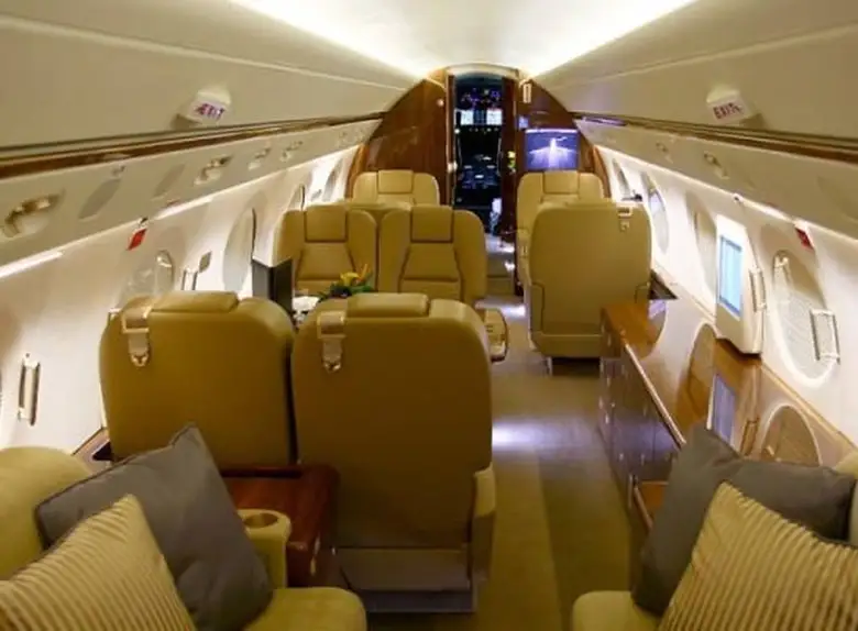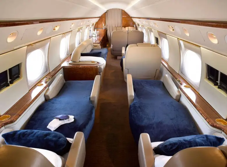 - Spacious and Luxurious Cabin: The G-V offers a large cabin with ample space for 12 to 16 passengers in typical configurations. The cabin dimensions are approximately 50.1 feet (15.3 m) long, 7.3 feet (2.2 m) wide, and 6.2 feet (1.9 m) high, providing a comfortable environment for work, relaxation, and sleep on long-haul flights. It often features multiple zones for privacy and productivity.