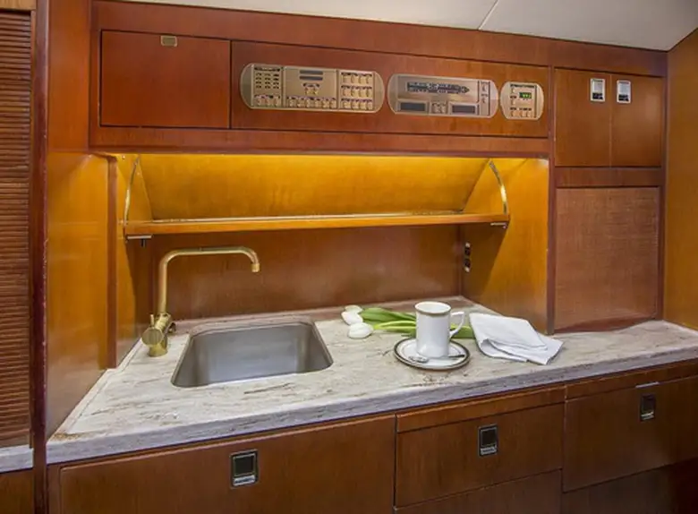 Available onboard amenities include Cabin crew , Entertainment system , Hot meal , Lavatory , Satellite phone .