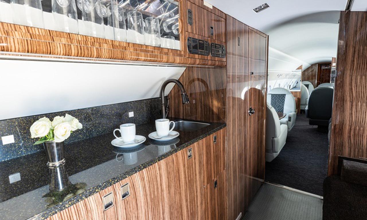 Gulfstream G-V N62FF accommodates up to 16 passengers. The baggage compartment volume of 5.24 m³ can hold up to 15 large suitcases . The maximum flight range reaches 12501 km, depending on payload and weather conditions.