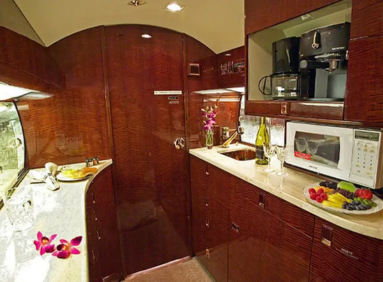 Available onboard amenities include Cabin crew , Hot meal , Lavatory , Pets allowed , Satellite phone .