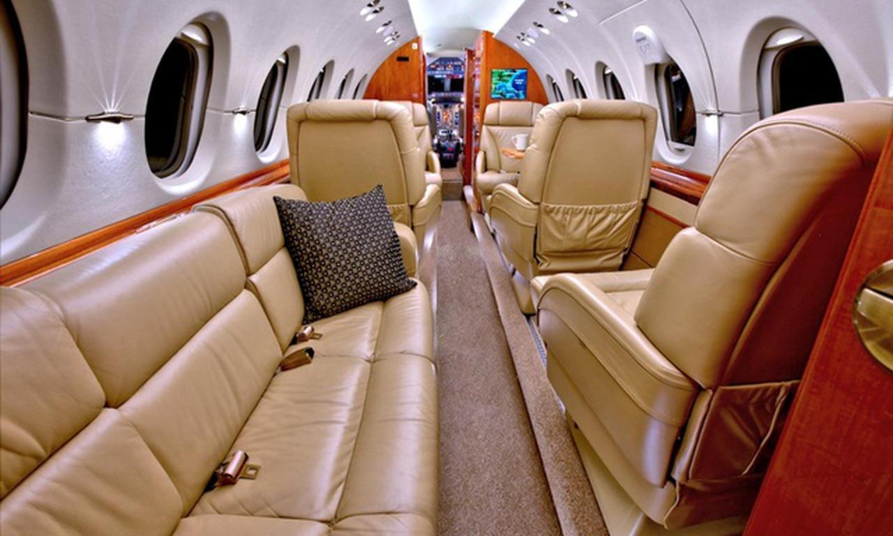 Hawker 900XP N900XP accommodates up to 8 passengers. The baggage compartment volume of 1.4 m³ can hold up to 4 large suitcases . The maximum flight range reaches 5219 km, depending on payload and weather conditions.