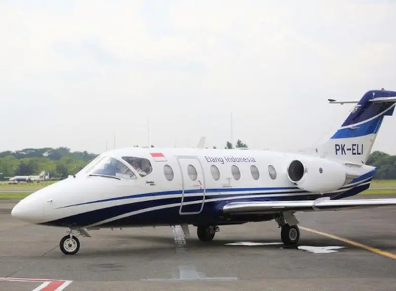 Hawker 400A with tail number PK-ELI (serial number RK-111) belongs to the Light Jet class and is operated by Elang Indonesia.