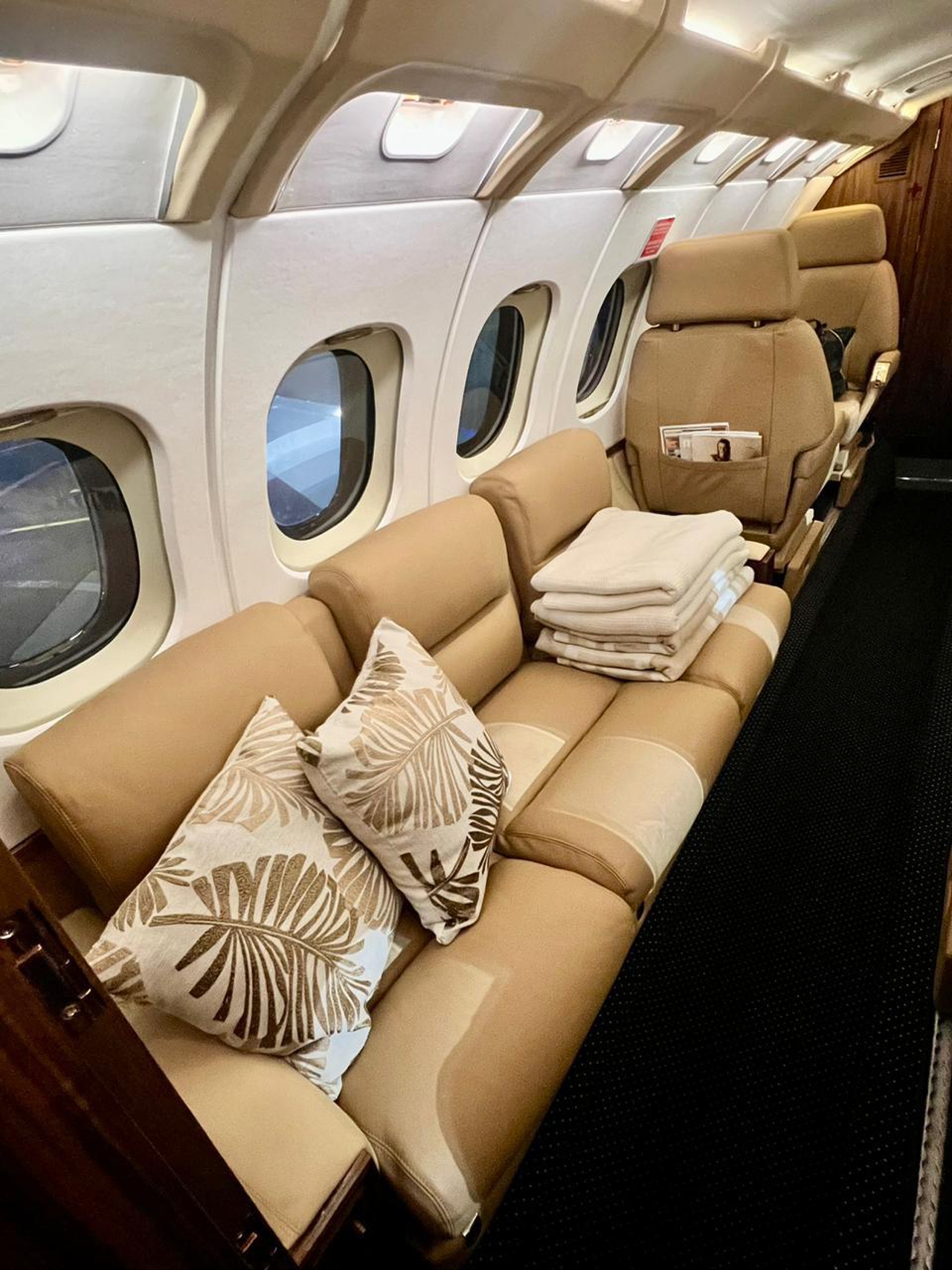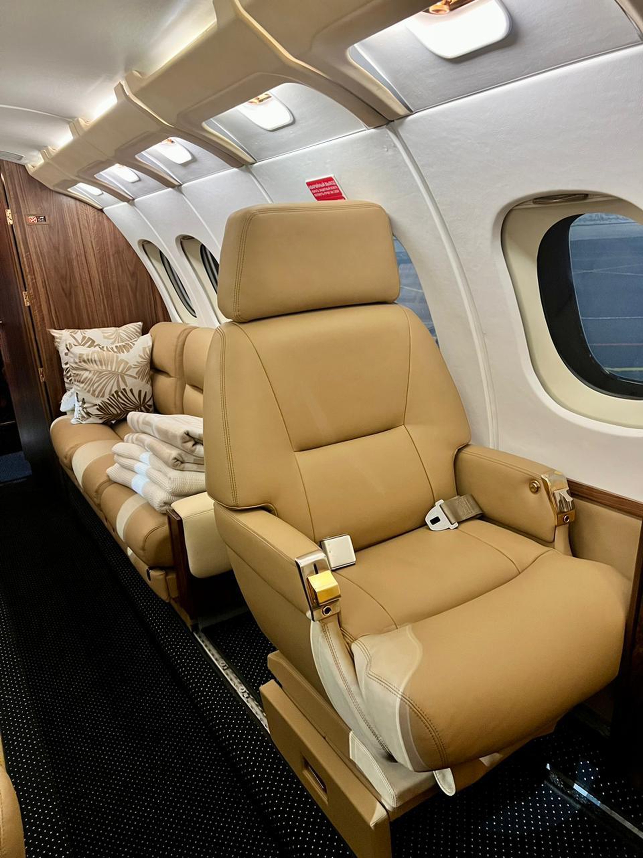 The aircraft was manufactured in 1983. The cabin interior was updated in 2024. Previously, the aircraft operated under registration ex VP-BMD.