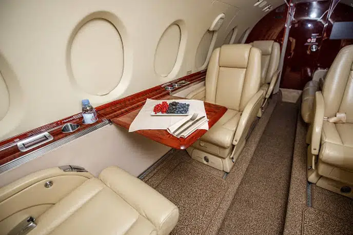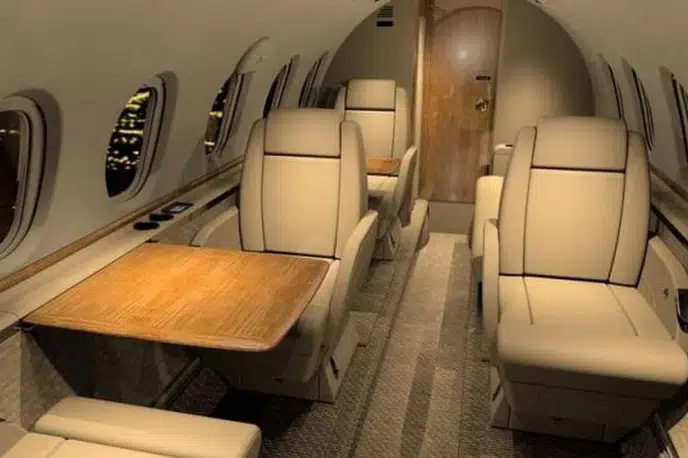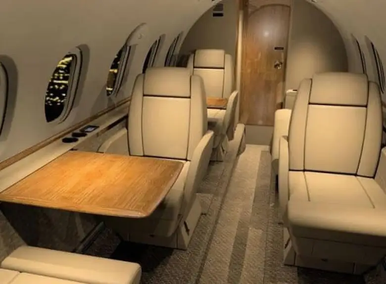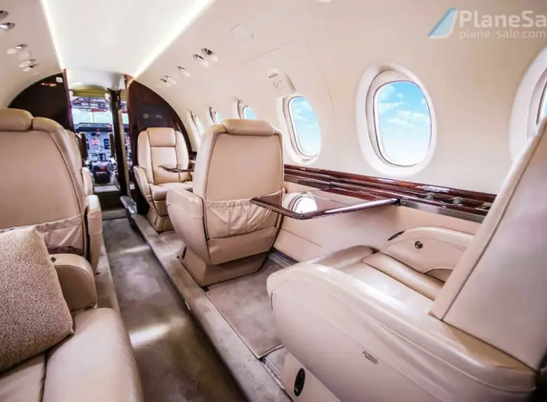 - Spacious Cabin: The Hawker 750XP is known for having one of the largest cabins in its class, typically accommodating 8 passengers in a comfortable configuration. It offers ample headroom and a stand-up cabin.