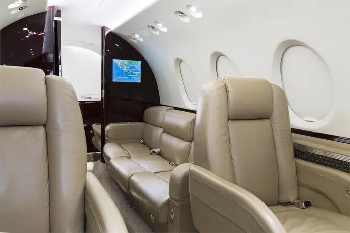 The Hawker 750 boasts one of the most spacious cabins in the light to midsize jet category. Its stand-up height allows for greater freedom of movement, and the generous width provides ample personal space.