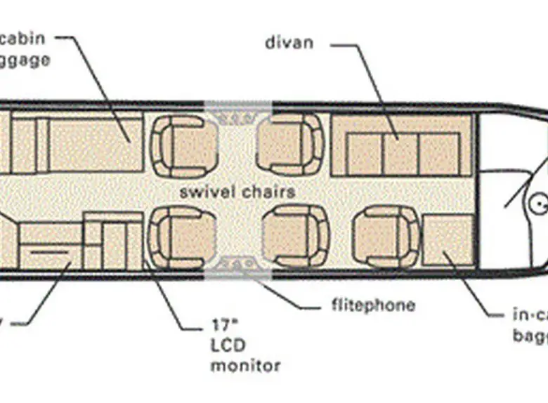Hawker 800XPi LY-LTD accommodates up to 8 passengers. The baggage compartment volume of 0.5 m³ can hold up to 1 large suitcases . The maximum flight range reaches 4852 km, depending on payload and weather conditions.