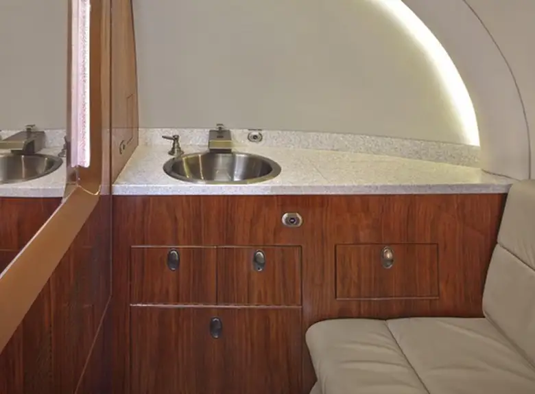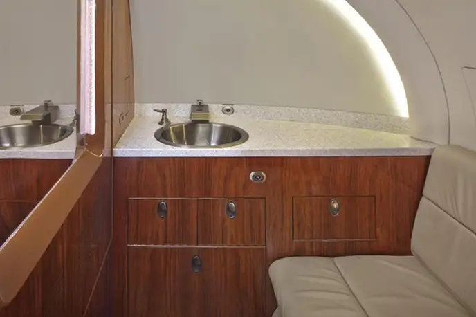 Available onboard amenities include Enclosed lavatory , Lavatory , Leather seats , Microwave oven , Wi-Fi (Satellite based) .