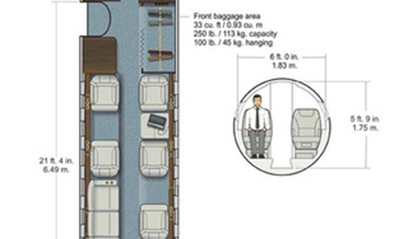 Hawker 850XP HS-CPG accommodates up to 8 passengers. The baggage compartment volume of 1.4 m³ can hold up to 4 large suitcases . The maximum flight range reaches 4893 km, depending on payload and weather conditions.
