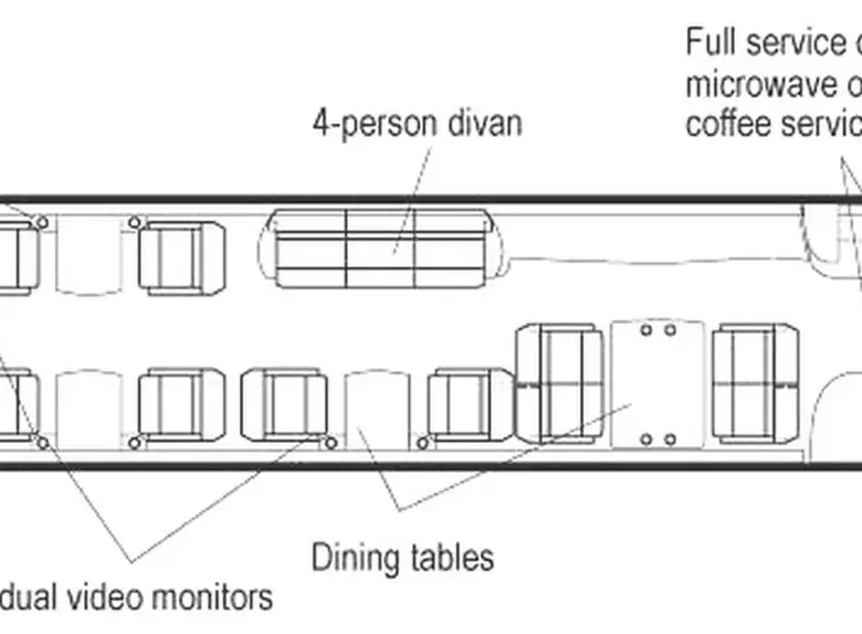 Available onboard amenities include Cabin crew , Entertainment system , Hot meal , Lavatory , Satellite phone .