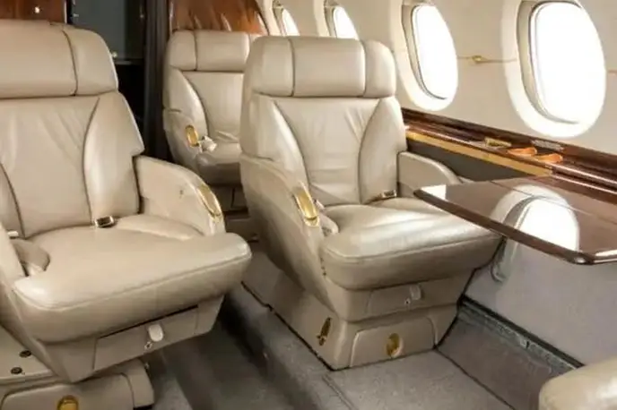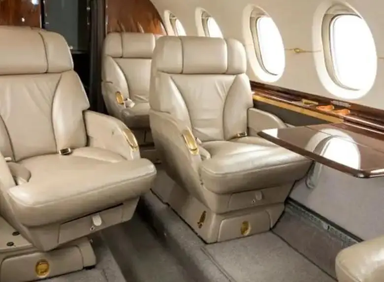 Hawker 850XP RA-02762 accommodates up to 6 passengers. The baggage compartment volume of 1.4 m³ can hold up to 4 large suitcases . The maximum flight range reaches 4893 km, depending on payload and weather conditions.