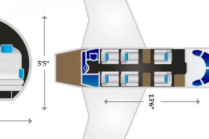 Despite its classification as a light jet, the Premier 1A offers cabin dimensions that rival those of many midsize aircraft: