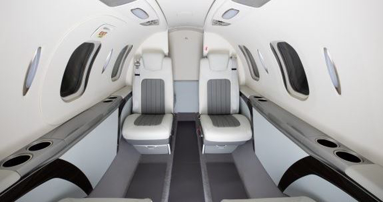 HondaJet C-FJJT accommodates up to 4 passengers. The baggage compartment volume of 0.84 m³ can hold up to 2 large suitcases . The maximum flight range reaches 2200 km, depending on payload and weather conditions.