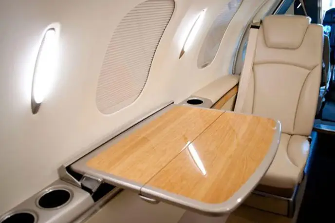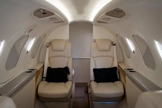 HondaJet N273C accommodates up to 5 passengers. The baggage compartment volume of 0.84 m³ can hold up to 2 large suitcases . The maximum flight range reaches 2200 km, depending on payload and weather conditions.