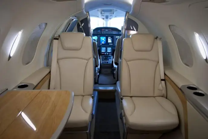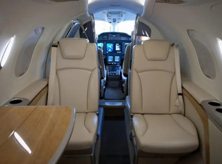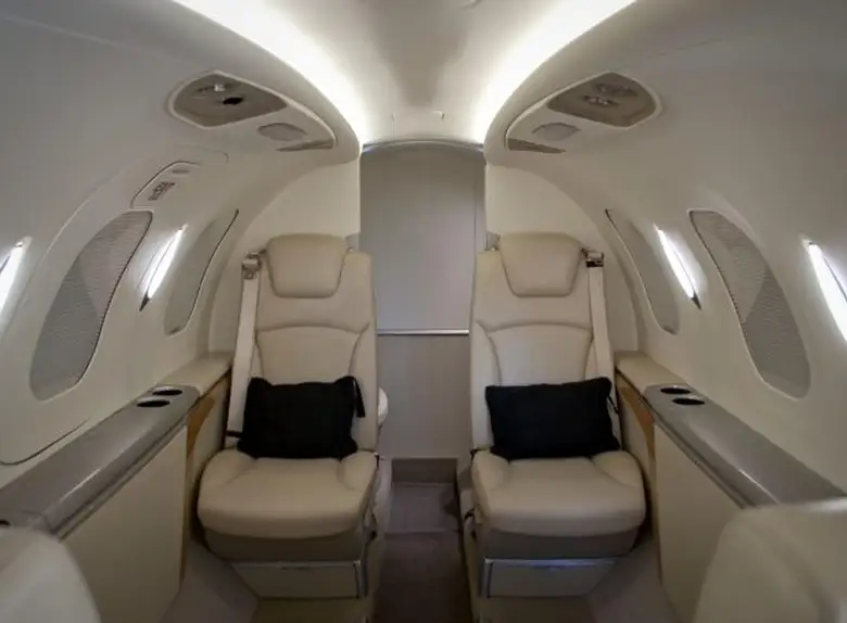HondaJet N420AZ accommodates up to 5 passengers. The baggage compartment volume of 0.84 m³ can hold up to 2 large suitcases . The maximum flight range reaches 2200 km, depending on payload and weather conditions.