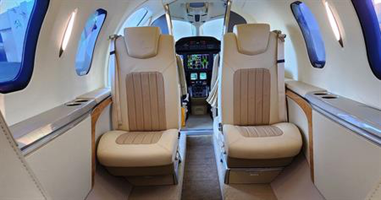 HondaJet N430E accommodates up to 6 passengers. The baggage compartment volume of 0.84 m³ can hold up to 2 large suitcases . The maximum flight range reaches 2200 km, depending on payload and weather conditions.