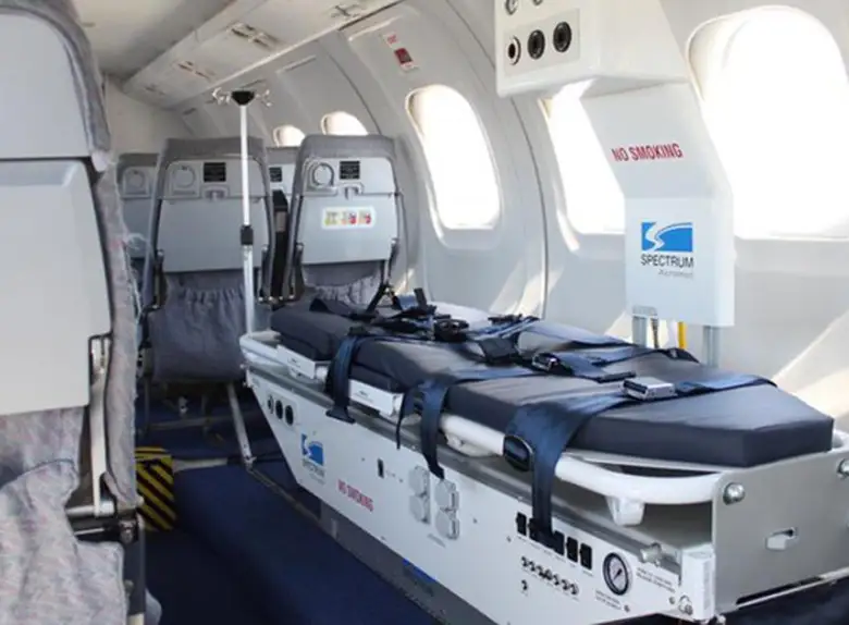 Available onboard amenities include Adult critical care , Lavatory , Medical ramp .