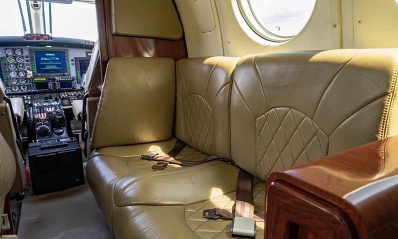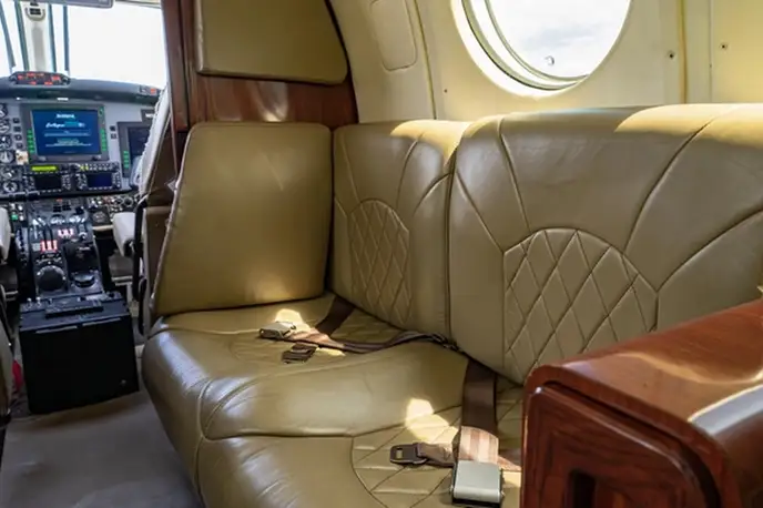 King Air 200 N239JV accommodates up to 8 passengers. The baggage compartment volume of 1.53 m³ can hold up to 4 large suitcases . The maximum flight range reaches 3756 km, depending on payload and weather conditions.