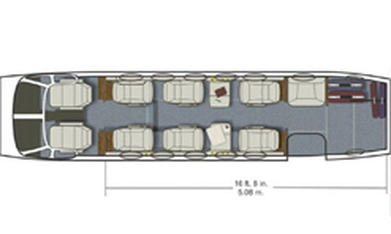 King Air 200C D-ISKY accommodates up to 6 passengers. The baggage compartment volume of 1.85 m³ . The maximum flight range reaches 3333 km, depending on payload and weather conditions.
