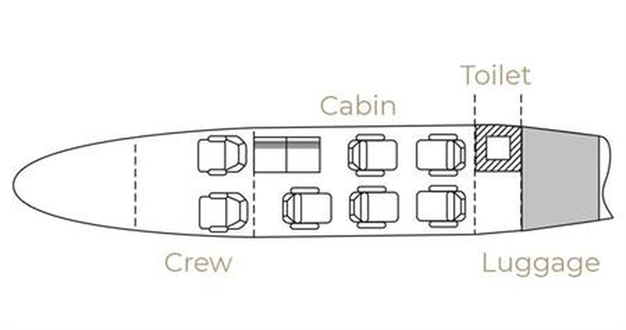 King Air 200C G-FLYW accommodates up to 8 passengers. The baggage compartment volume of 1.85 m³ . The maximum flight range reaches 3333 km, depending on payload and weather conditions.