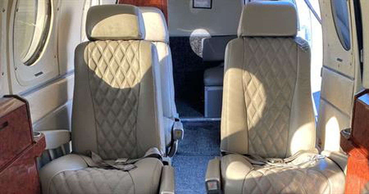 King Air 200C N250NC accommodates up to 8 passengers. The baggage compartment volume of 1.85 m³ . The maximum flight range reaches 3333 km, depending on payload and weather conditions.