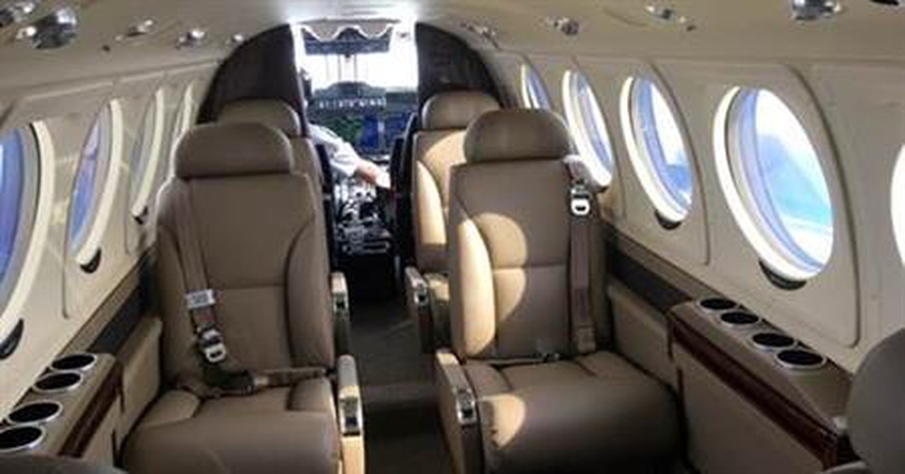 King Air 250 G-REXA accommodates up to 7 passengers. The baggage compartment volume of 1.6 m³ . The maximum flight range reaches 3185 km, depending on payload and weather conditions.