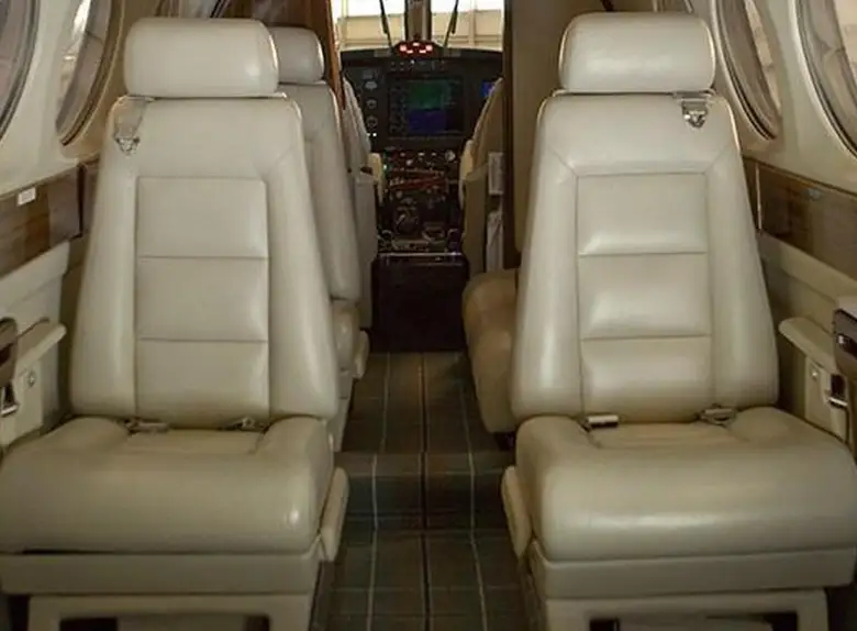 King Air 300 N54YC accommodates up to 6 passengers. The baggage compartment volume of 16.4 m³ can hold up to 49 large suitcases . The maximum flight range reaches 2450 km, depending on payload and weather conditions.