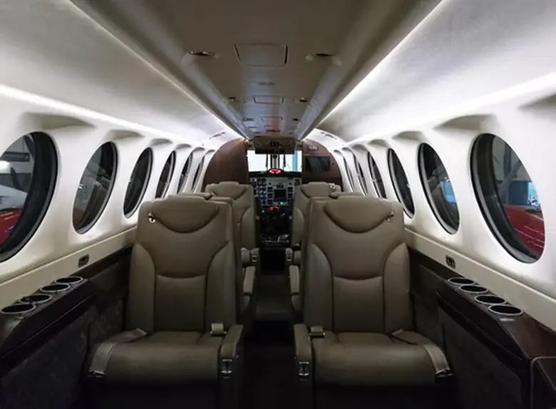 Hawker Beechcraft King Air 350iER SE-LLU (H-Bird Aviation Services AB) is premium Turbo Prop jet for 8 passengers with a range of 4361 km. JETVIP offers charter from 2000 €: verified aircraft, transparent pricing, real photos and signature JETVIP ratings. Model ratings: Reliability — 86/100, Comfort — 72/100, Popularity — 4.2/5.