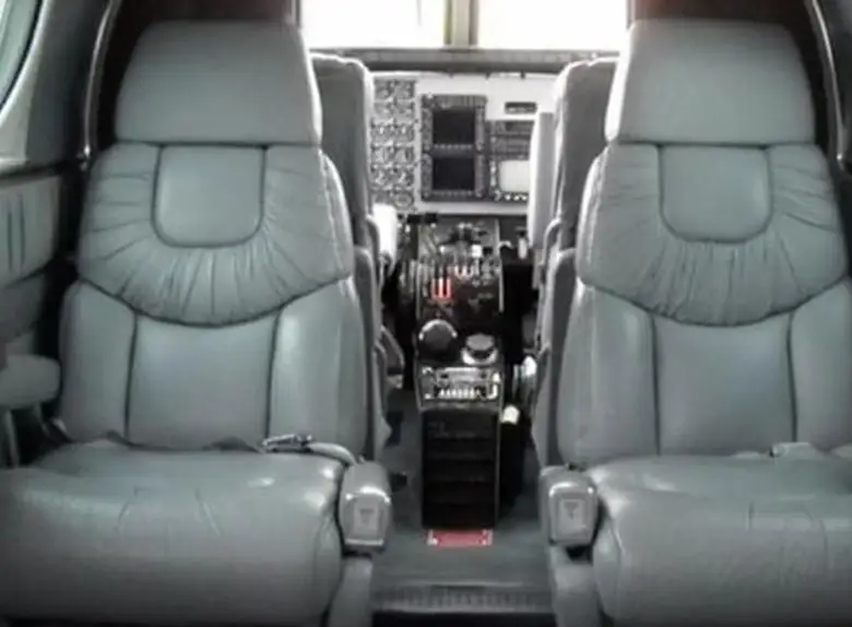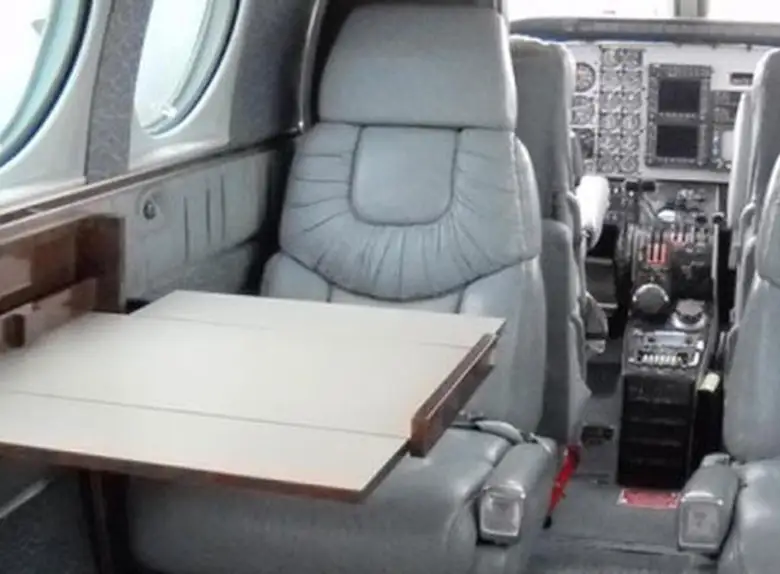 King Air C90 N77CE accommodates up to 7 passengers. The baggage compartment volume of 1.57 m³ can hold up to 4 large suitcases . The maximum flight range reaches 1539 km, depending on payload and weather conditions.
