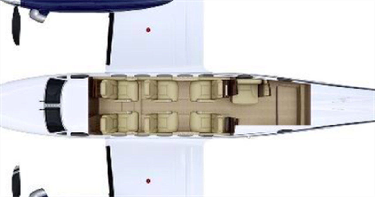 King Air B200GT G-NICB accommodates up to 7 passengers. The baggage compartment volume of 1.57 m³ can hold up to 4 large suitcases . The maximum flight range reaches 3334 km, depending on payload and weather conditions.