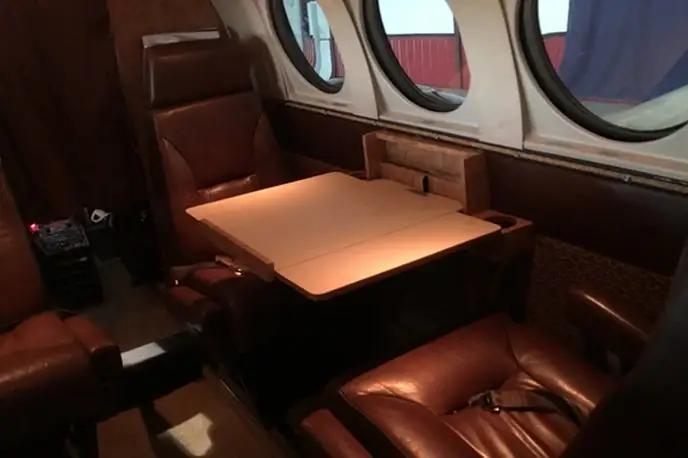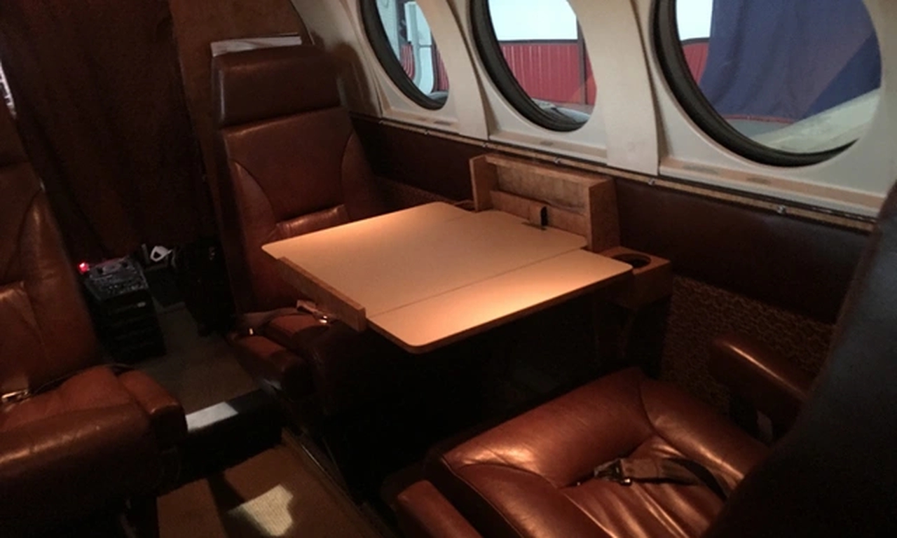 King Air C90A N136PA . The baggage compartment volume of 1.37 m³ can hold up to 4 large suitcases . The maximum flight range reaches 2446 km, depending on payload and weather conditions.