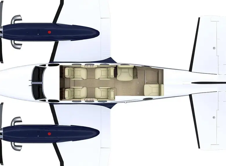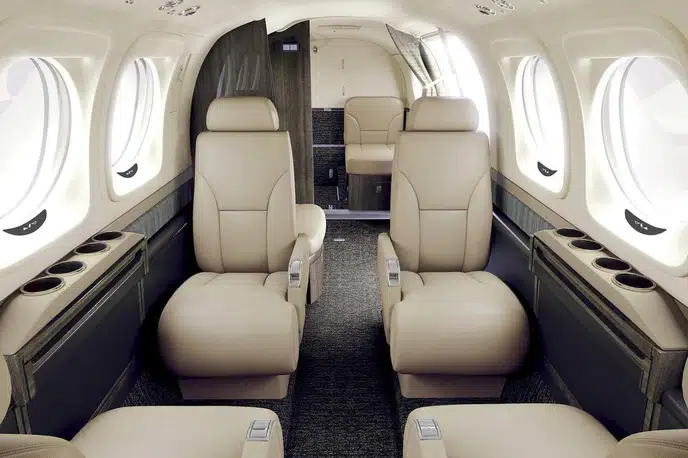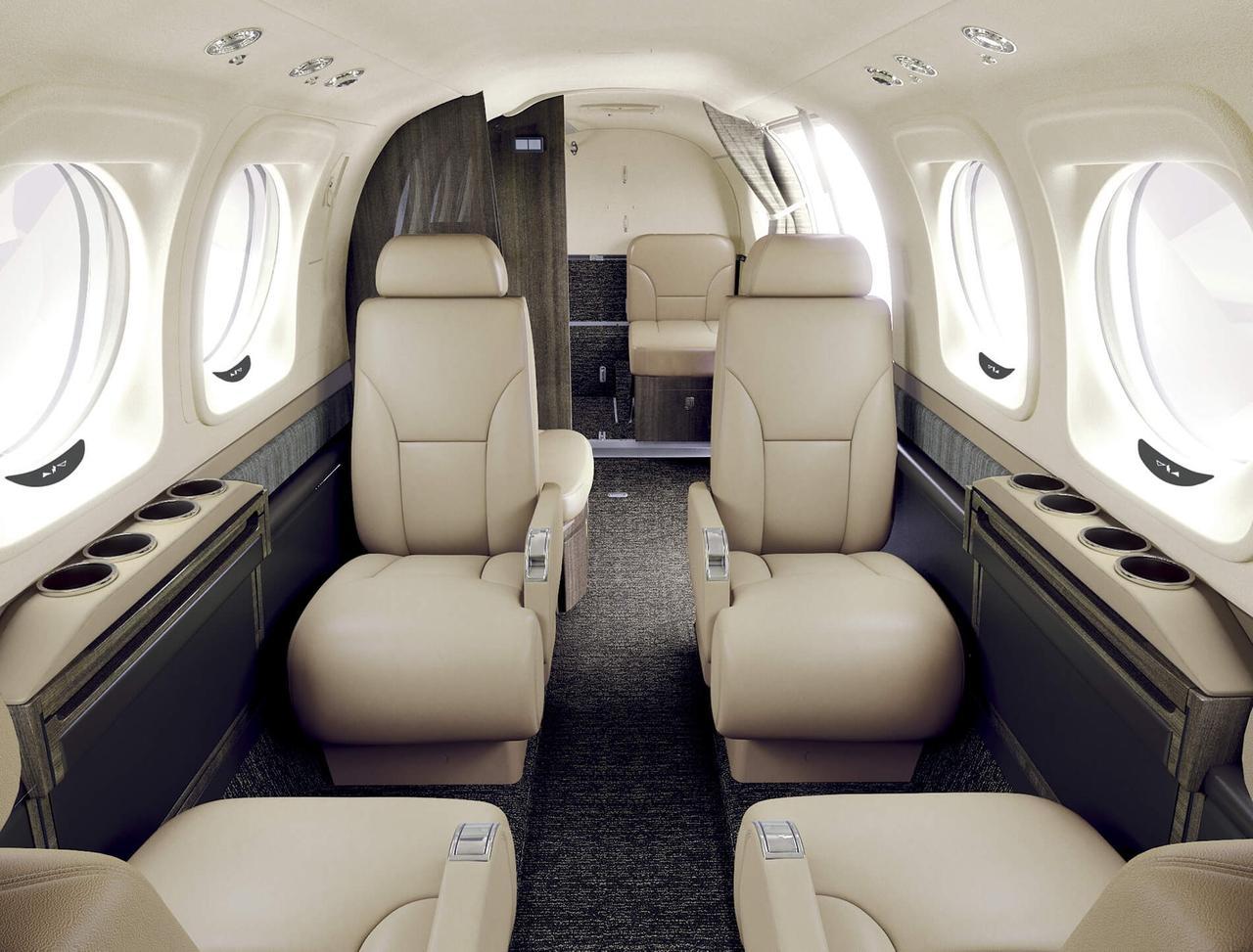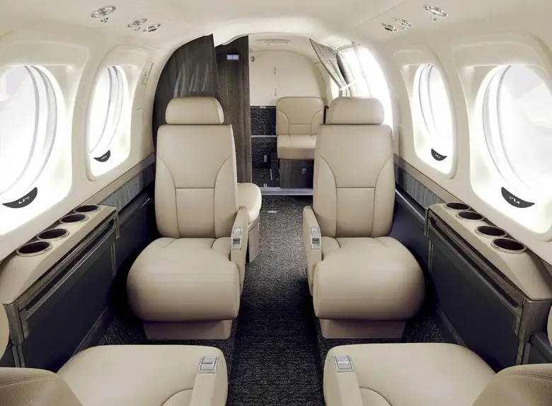 The aircraft seats up to 7 passengers in a well-insulated cabin with plush, ergonomic seating. It’s perfect for both productive business travel and relaxed personal flights.