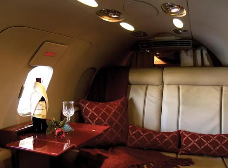 Learjet 35A N453AM accommodates up to 8 passengers. The baggage compartment volume of 1.1 m³ can hold up to 3 large suitcases . The maximum flight range reaches 2892 km, depending on payload and weather conditions.