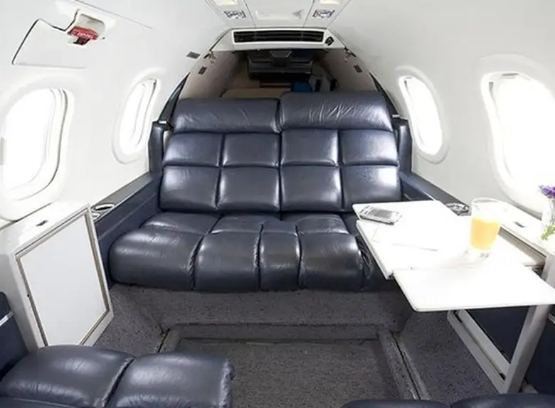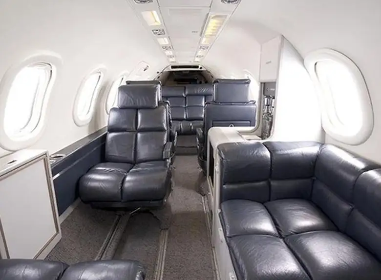 Learjet 35A N626BM accommodates up to 8 passengers. The baggage compartment volume of 1.1 m³ can hold up to 3 large suitcases . The maximum flight range reaches 2892 km, depending on payload and weather conditions.