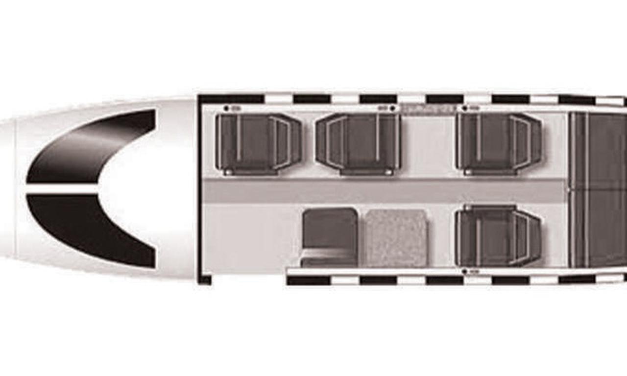 Learjet 35A N817EM accommodates up to 8 passengers. The baggage compartment volume of 1.1 m³ can hold up to 3 large suitcases . The maximum flight range reaches 2892 km, depending on payload and weather conditions.