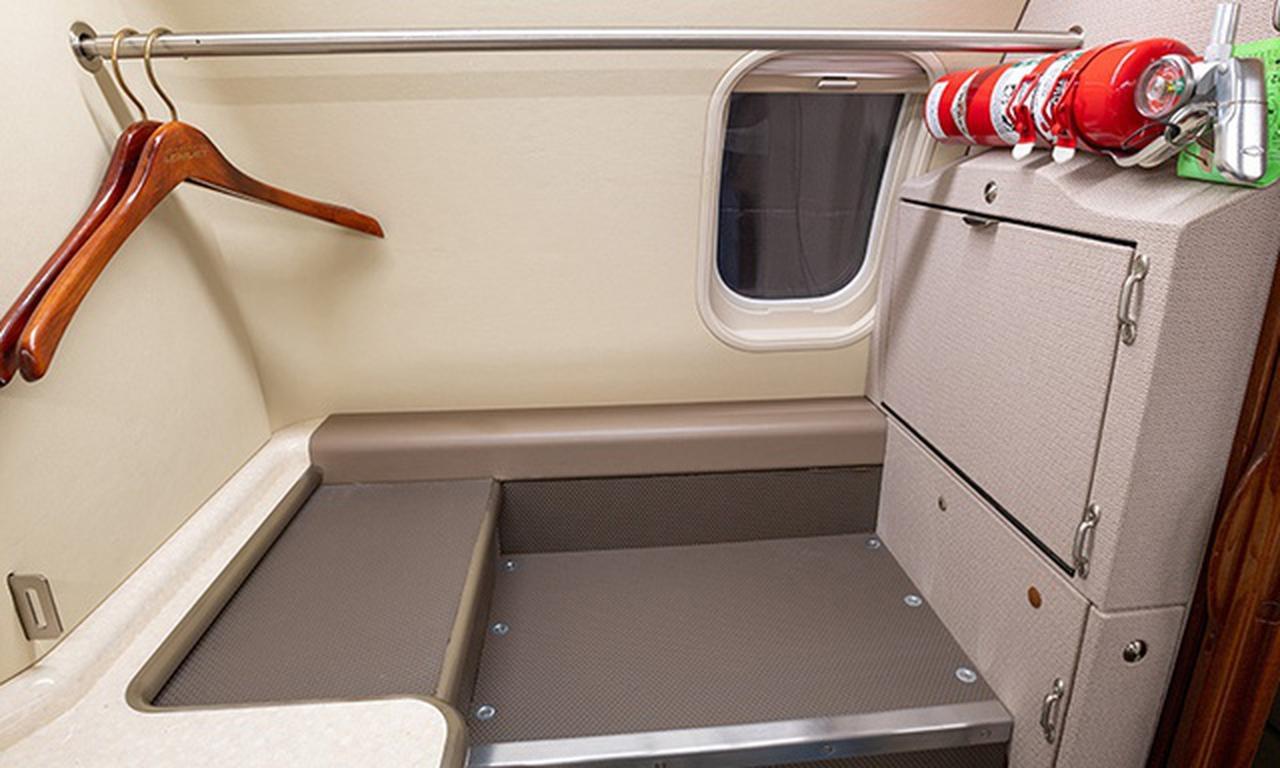 Learjet 45XR N823HM accommodates up to 8 passengers. The baggage compartment volume of 1.84 m³ can hold up to 5 large suitcases . The maximum flight range reaches 3865 km, depending on payload and weather conditions.