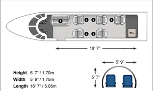 Prices are calculated for a one-way flight with 3 passengers, based on historical data and average market rates for this aircraft type. The final quote will be provided by your manager and may vary depending on aircraft availability, travel dates, airport fees, and additional services.