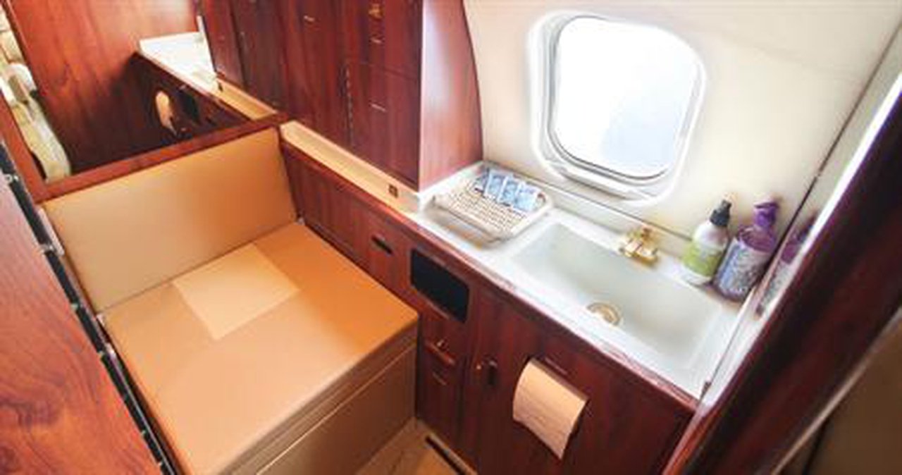 Available onboard amenities include Lavatory , Leather seats , Pets allowed .