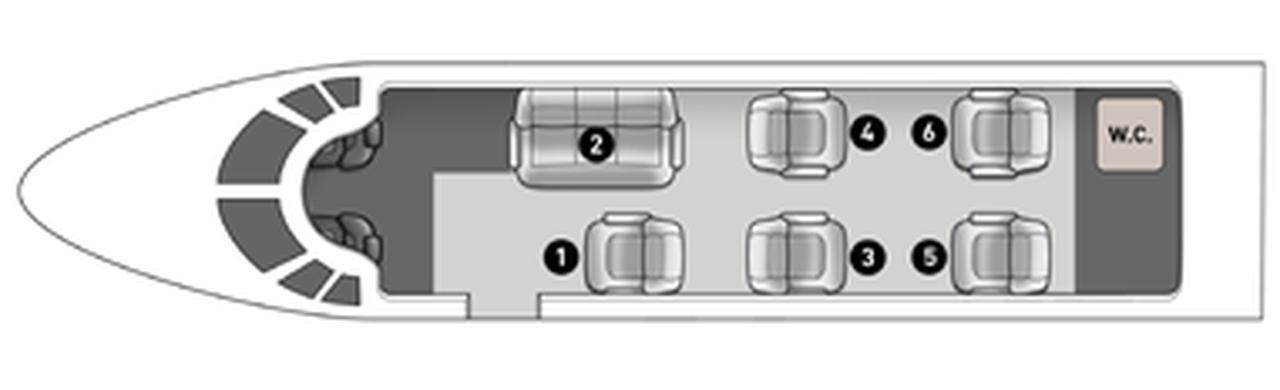 Learjet 60XR ES-PVR accommodates up to 6 passengers. The baggage compartment volume of 1.36 m³ can hold up to 4 large suitcases . The maximum flight range reaches 4539 km, depending on payload and weather conditions.
