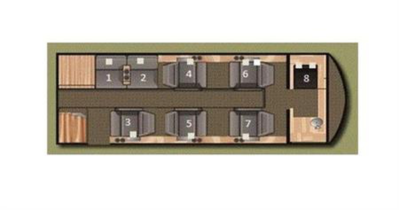 Learjet 60XR LV-FVZ accommodates up to 8 passengers. The baggage compartment volume of 1.36 m³ can hold up to 4 large suitcases . The maximum flight range reaches 4539 km, depending on payload and weather conditions.