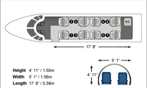 Learjet 60XR N44EL accommodates up to 7 passengers. The baggage compartment volume of 1.36 m³ can hold up to 4 large suitcases . The maximum flight range reaches 4539 km, depending on payload and weather conditions.