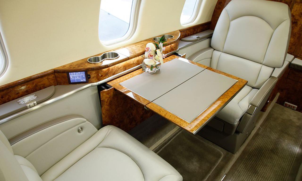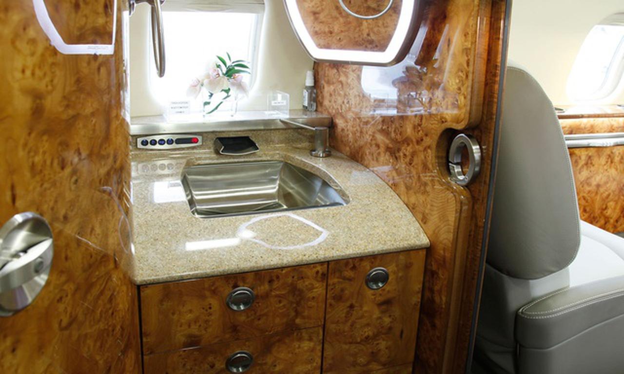 Available onboard amenities include AirShow , Enclosed lavatory , Flatware , Freon Air conditioning , Full galley , IPOD station , Lavatory , Lavatory sink , Microwave oven , Pets allowed , Power outlet , Satellite phone , Video monitors .