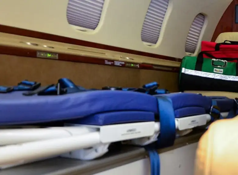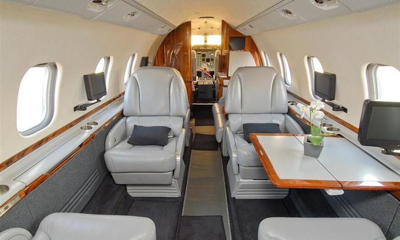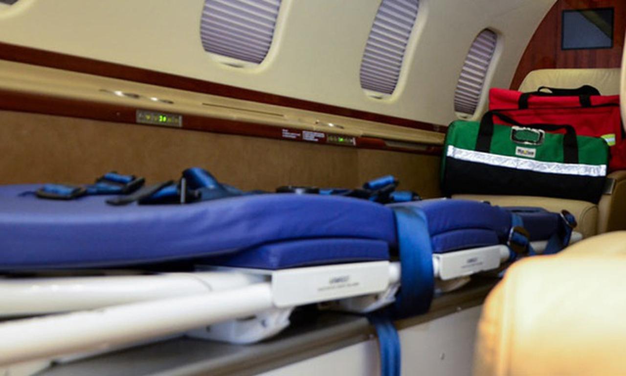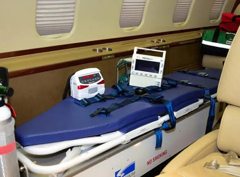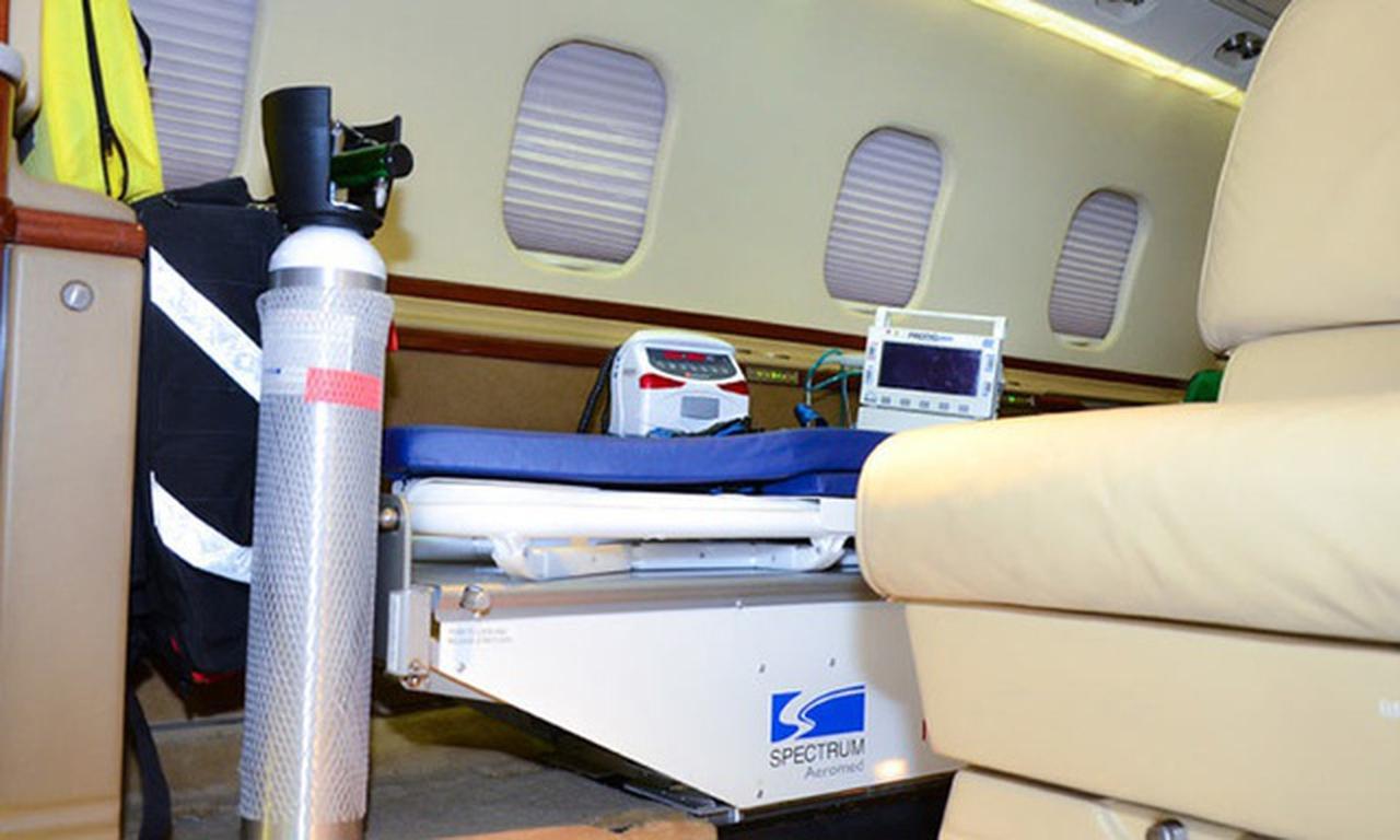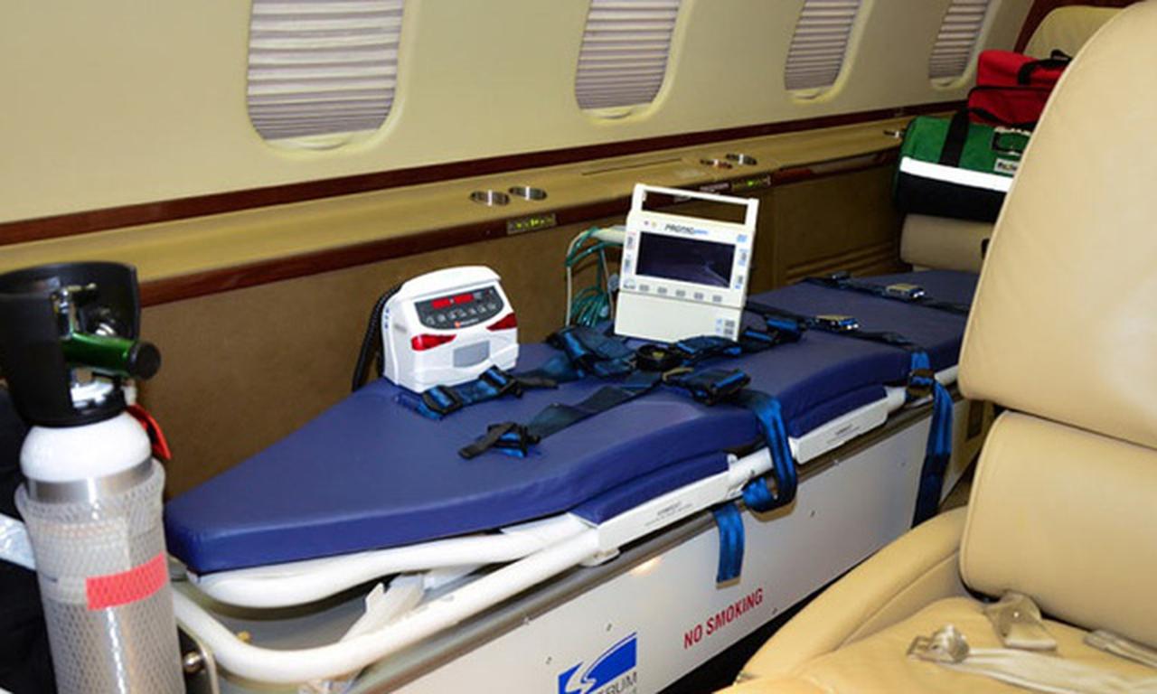 Available onboard amenities include 110V Outlet , Adult critical care , AirShow , Hot meal , Lavatory , Lavatory sink , Leather seats , Medical ramp , Oven , Partial galley , Pets allowed , Power outlet , Satellite phone .