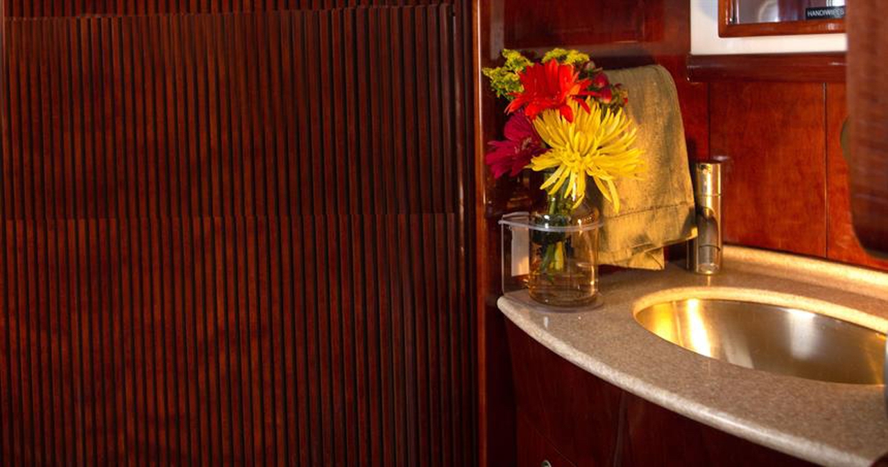 Available onboard amenities include Enclosed lavatory , Freon Air conditioning , Pets allowed .