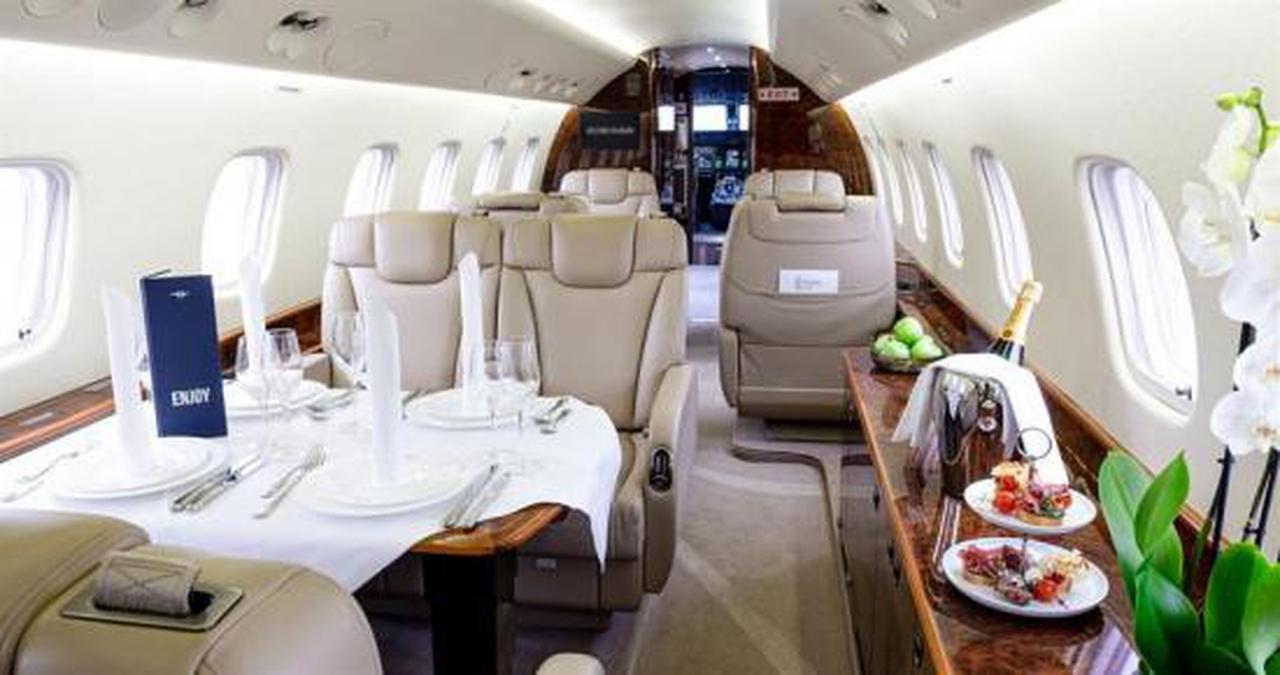 Available onboard amenities include 230V , Blu-Ray , Cabin server , Certified jump seat , Convection oven , Enclosed lavatory , Espresso machine , Flight attendant available , Full galley , IPOD station , Pets allowed , Satellite phone , Smoking allowed .