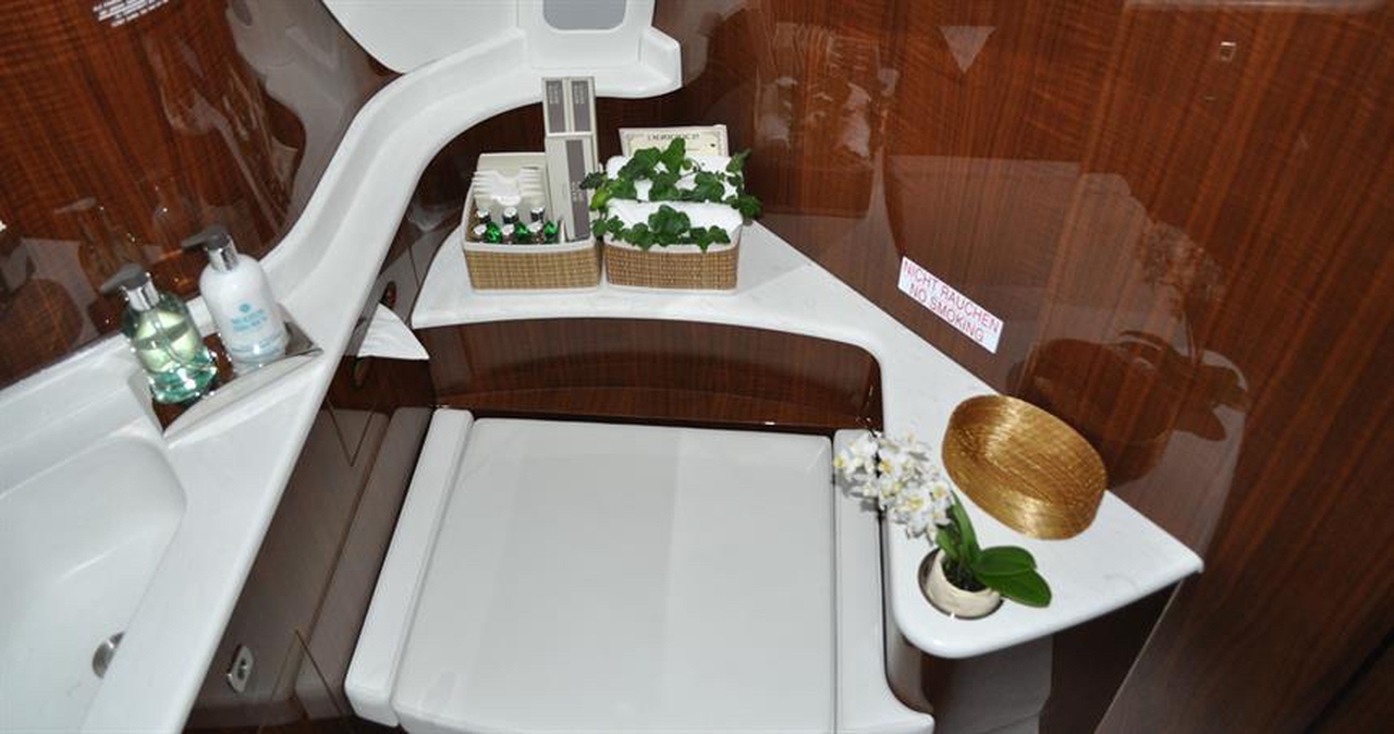 Available onboard amenities include Cabin crew , Entertainment system , Hot meal , Lavatory , Satellite phone .