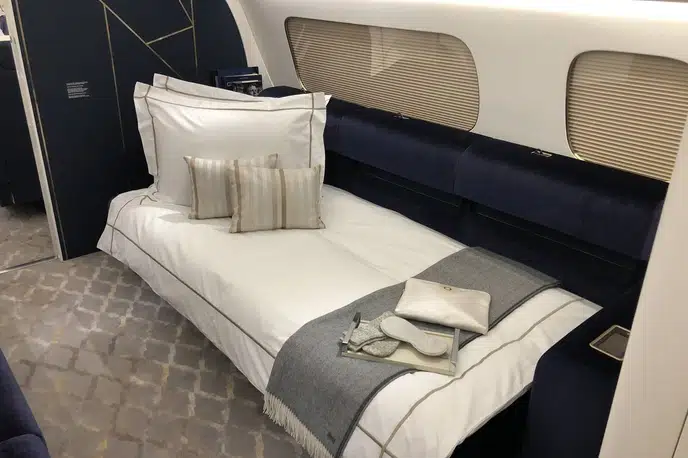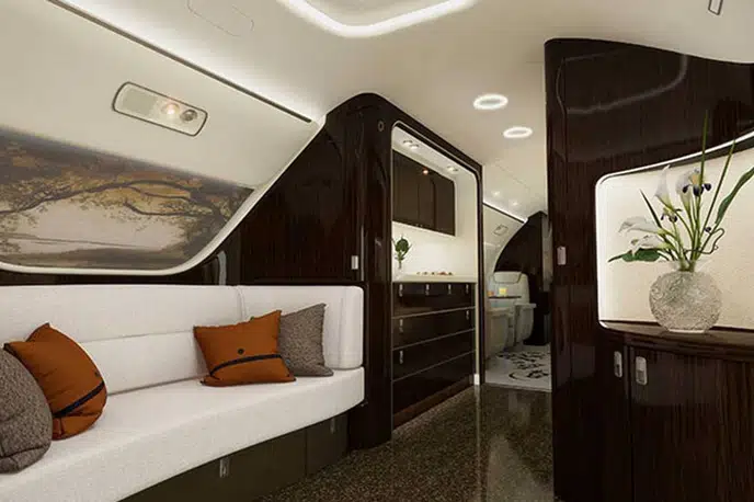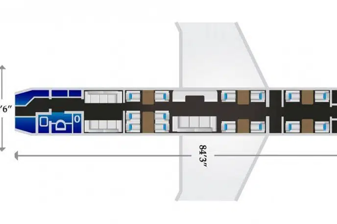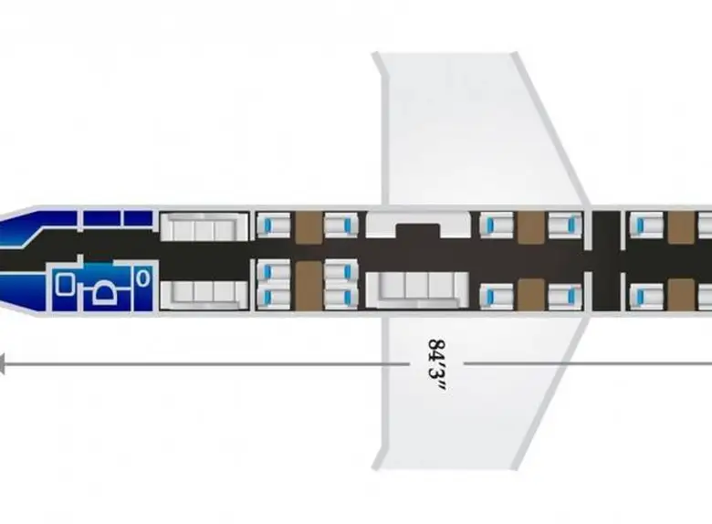 - Cabin length: 84.3 feet (25.7 m) — one of the longest in the business jet category