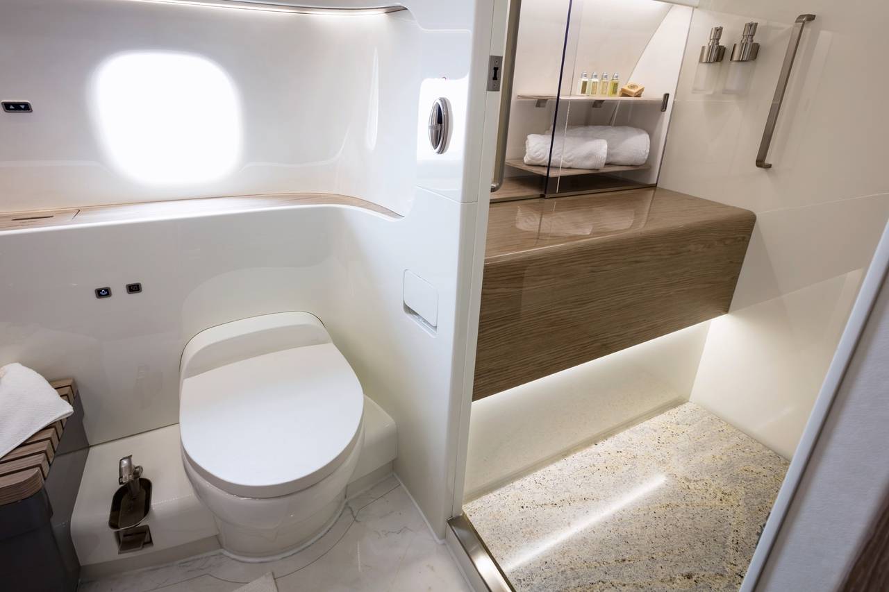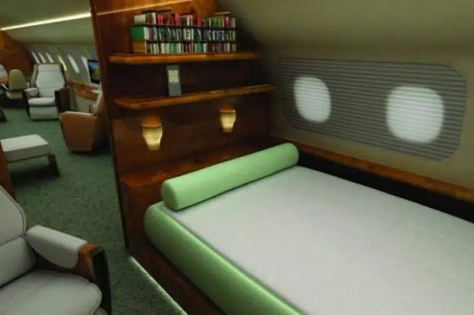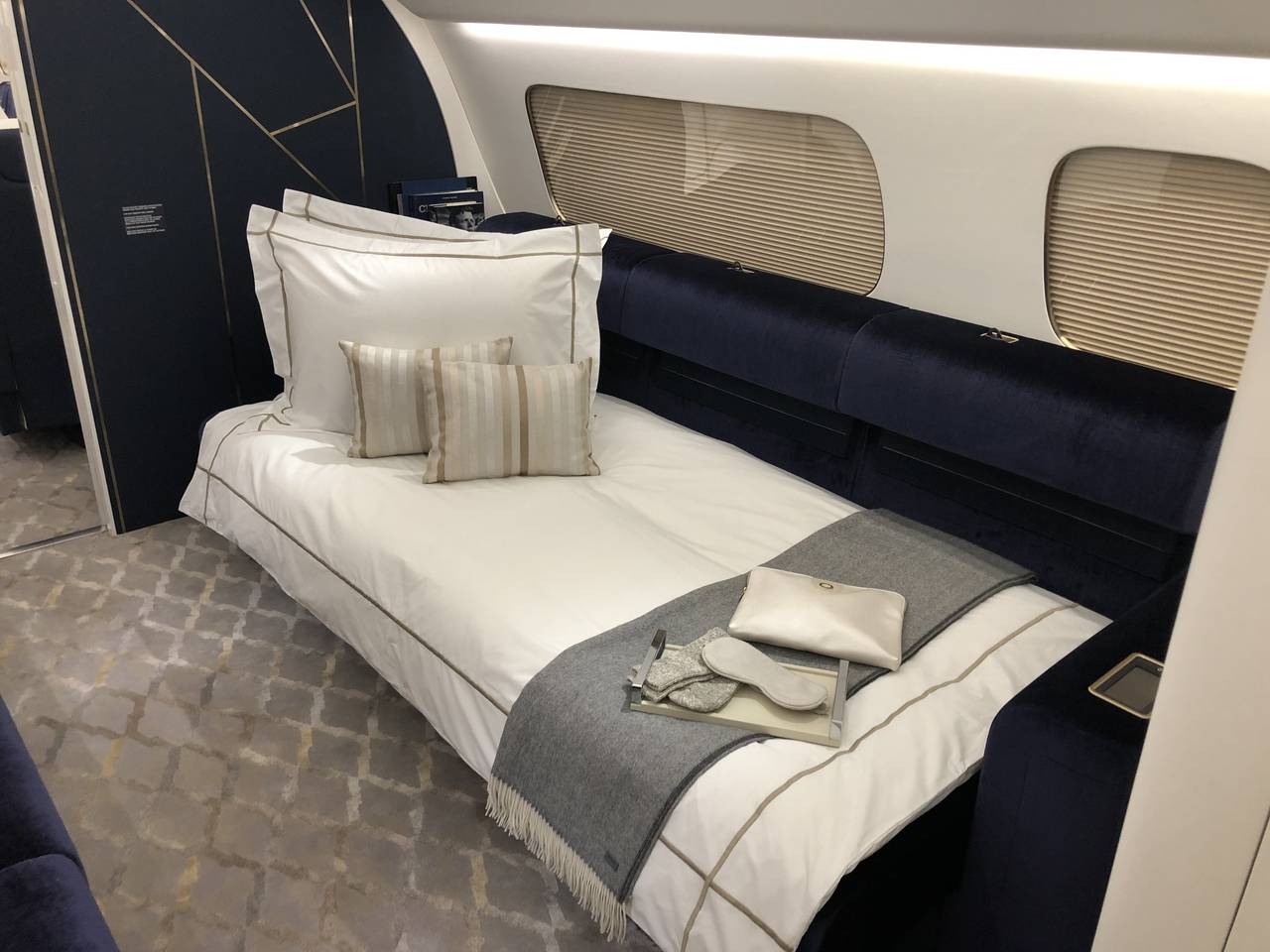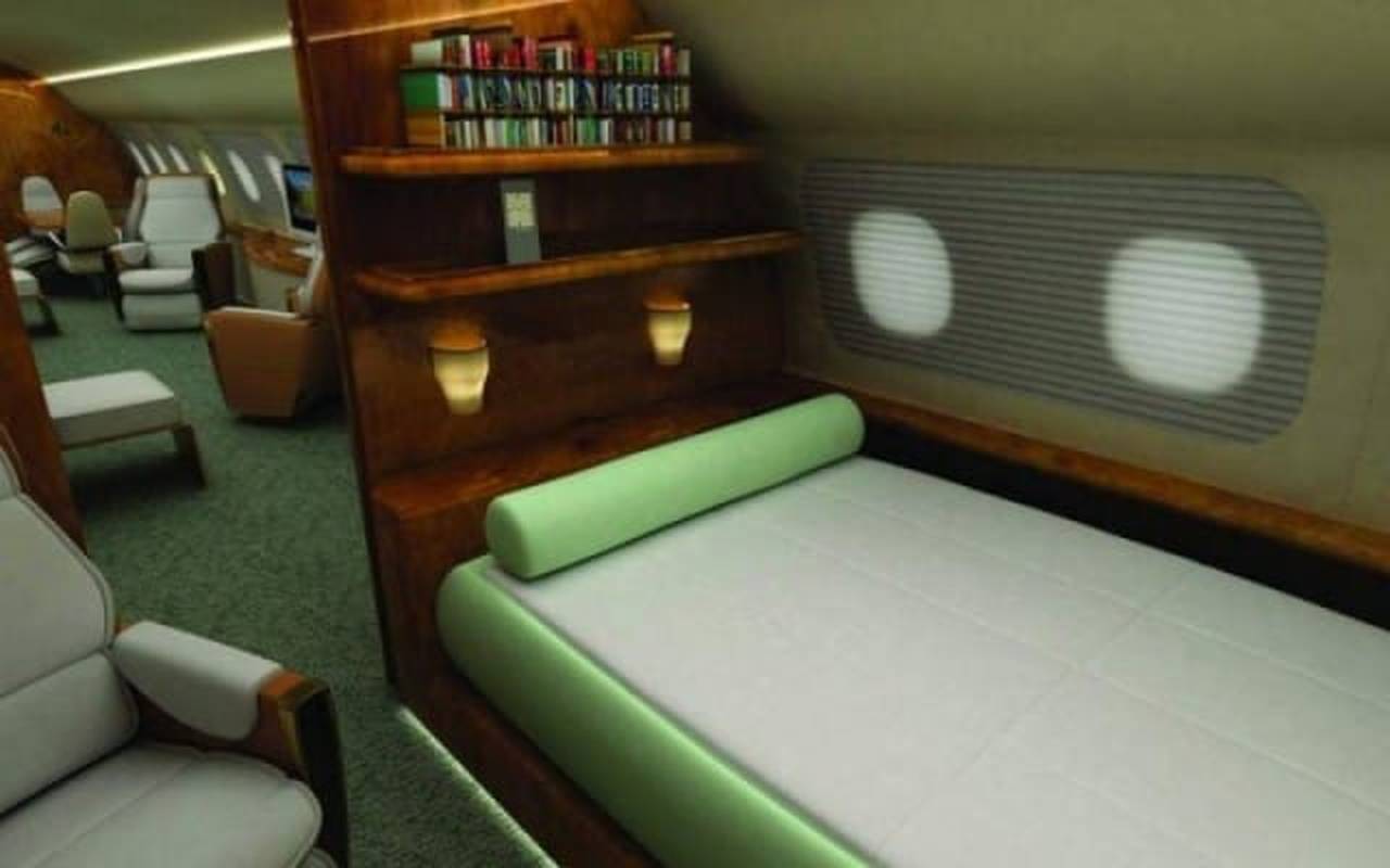 - Conference Room: Boardroom-style meeting space for in-flight presentations