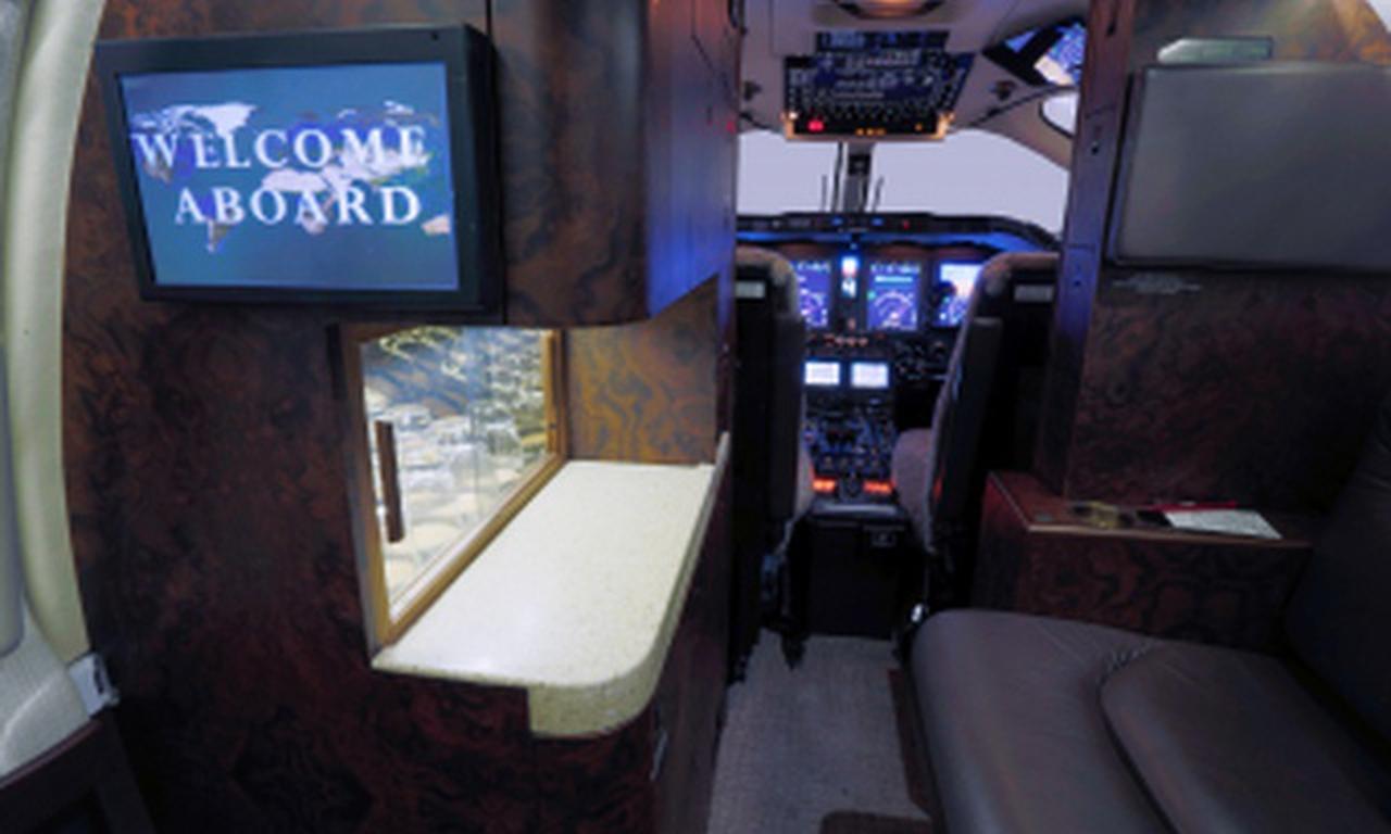 Available onboard amenities include 110V Outlet , AirShow , Enclosed lavatory , Flight phone , Freon Air conditioning , Lavatory , Leather seats , Partial galley , Pets allowed , Satellite phone , Ski tube , WI-FI (Ground based) .