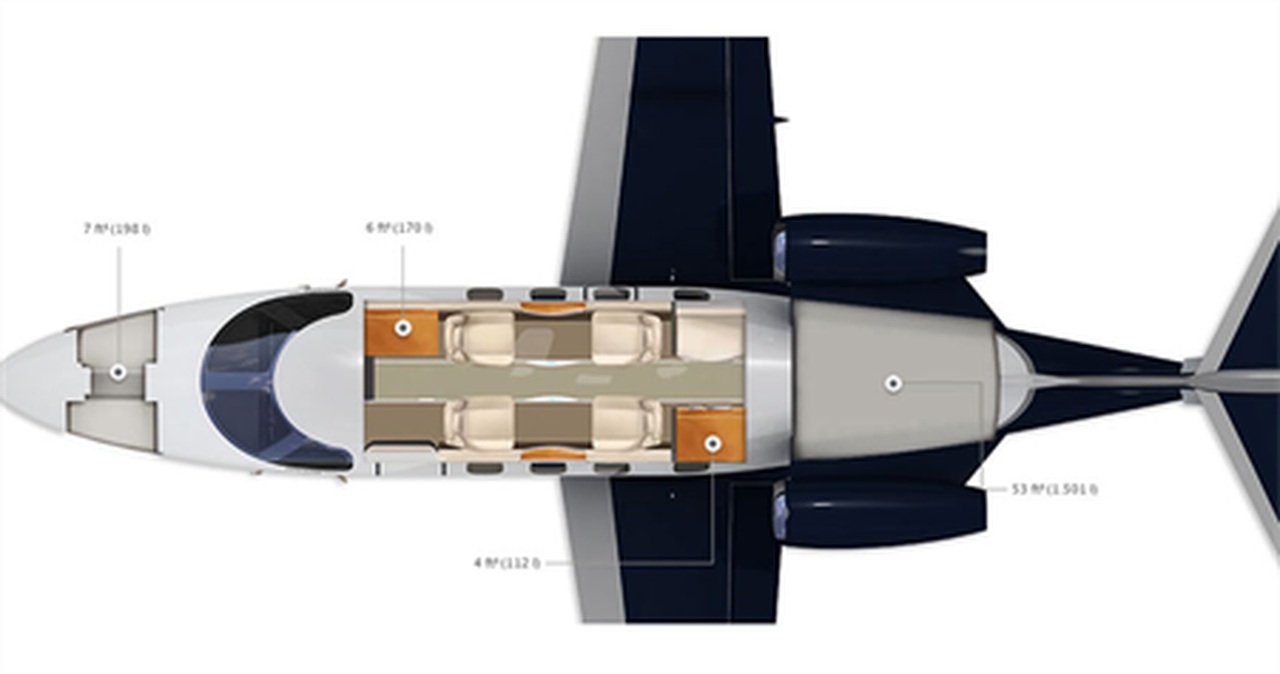 Phenom 100 N337HC accommodates up to 4 passengers. The baggage compartment volume of 1.75 m³ can hold up to 5 large suitcases . The maximum flight range reaches 2182 km, depending on payload and weather conditions.