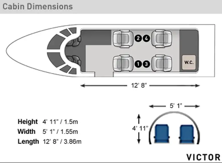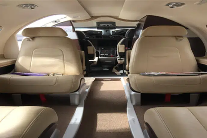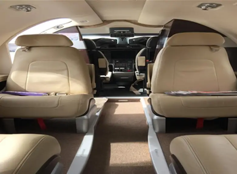 Phenom 100E CS-DVS accommodates up to 5 passengers. The baggage compartment volume of 1.75 m³ can hold up to 5 large suitcases . The maximum flight range reaches 2148 km, depending on payload and weather conditions.